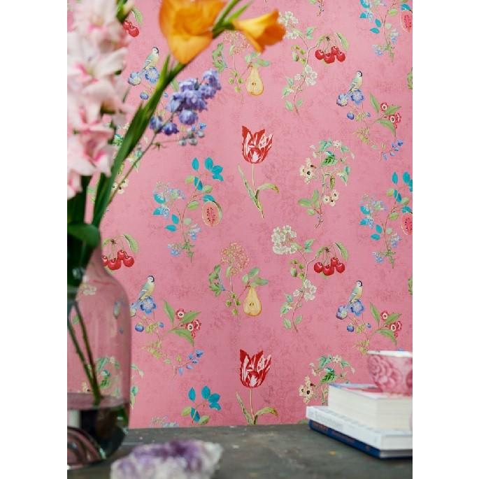 壁紙 Pipstudio4 輸入壁紙 花柄 果物 小鳥 ピンク Diy 貼ってはがせる オランダ製 10m巻 インテリアショップ デコール 通販 Yahoo ショッピング